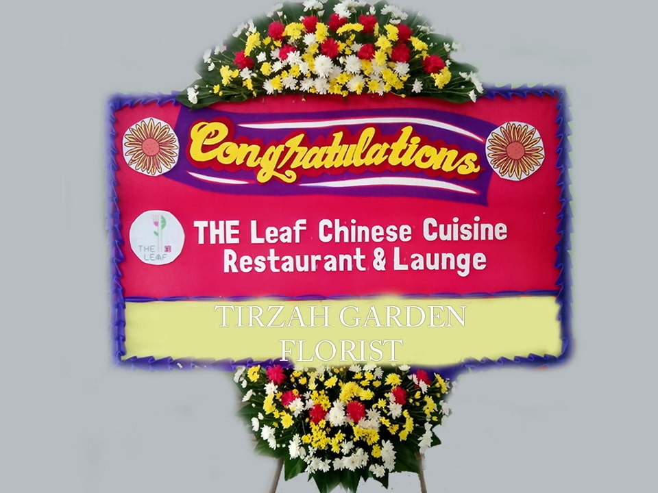 dengan 1 rangkaian bunga di atas papan dan 1 rangkaian bunga di bawah papan