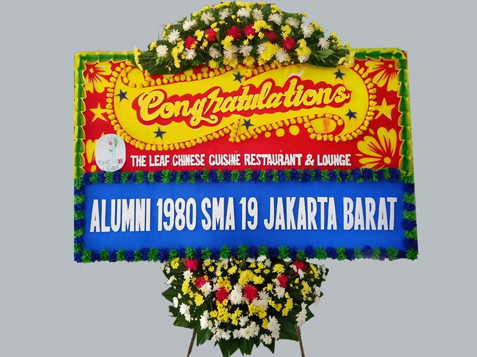 dengan 1 rangkaian bunga di atas papan dan 1 rangkaian bunga di bawah papan