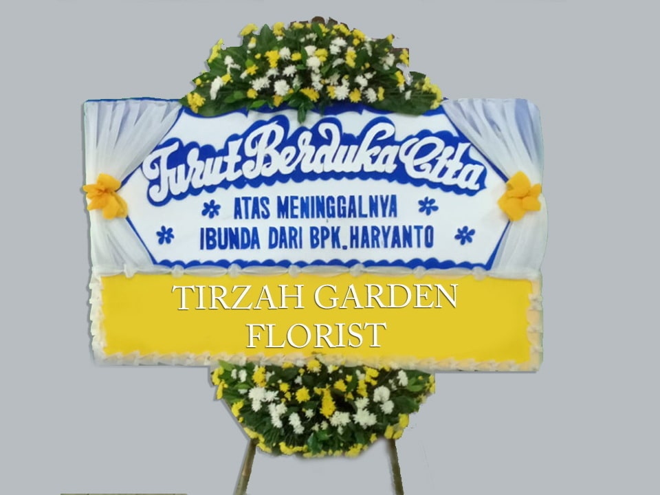 dengan 1 rangkaian bunga di atas papan dan 1 rangkaian bunga di bawah papan