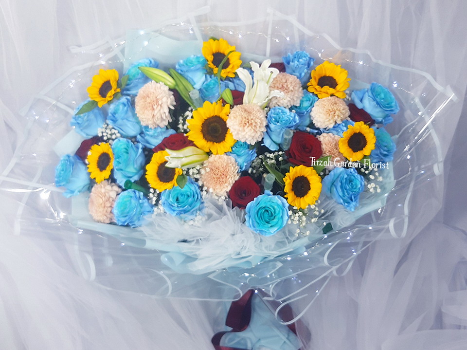 Variant | babybreath, gompie, lily, roses, sunflower, |